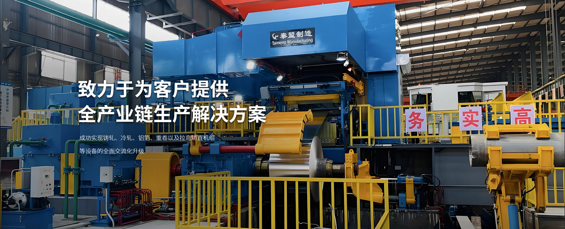 洛陽泰盟機械制造有限公司成立于2008年12月位于中國(河南)自由貿易試驗區洛陽片區高新開發區青城路1號,緊鄰洛陽繞城高速高新區站和高新區主干道河洛路,地理位置優越。擁有固定資產5000萬元,屬于有限責任公司、民營企業,高新技術企業,公司已通過ISO9001質量管理體系認證。 公司主要部門有銷售部、設計部、生產部、采購部、財務部。公司主要為鋁加工企業提供規劃布局,為鋁加工企業提供生產用的整套裝備的設計、制造、安裝調試,承接鋁加工生產裝備交鑰匙工程。 為主要客戶明泰鋁業、東興嘉宇、鑫泰鋁業、桐昆集團、大亞新能源、中州鋁業、銘島鋁業、廣東三英、云鋁股份、佛山鋁業、萬達鋁業、金濤集團、山東創新、龍鼎鋁業及國內其它鋁加工企業配套生產各種鋁鑄軋機、冷軋機、箔軋機、熱軋機組及其精整設備拉彎矯直機、橫切機、重卷機、輥涂線、開卷機、卷取機、聯合齒輪箱等,廠區占地面積82畝,定員115人,設有獨立的鉚焊車間,裝配車間配有裝配平臺,液壓泵站,整套設備出廠前經過整體試裝并液壓試動作。公司設備有110鏜床、130鏜床、160落地鏜床、200落地鏜床、1.6米*6米臥車、1.3米*5米臥車、2米滾齒機、4*10米數控龍門加工中心及其它輔助設備。 公司成立以來設計制造的寬幅2450㎜連鑄連軋機組。國內現有生產速度較快(每分鐘3.2米),較薄(2.8mm)的高速鑄軋機組。 目前的綠色短流程60條連鑄連軋機組,全交流冷軋機組、2000/2200鋁箔軋機以及2300六輥冷軋機組,得到了客戶的高度認可。 目前,我公司已成功實現鑄軋、冷軋、鋁箔、重卷以及拉彎矯直機組等設備的全方面交流化升級。這一重要舉措不僅有助于客戶顯著降低生產成本,還能有效提升其經濟收益,從而在激烈的市場競爭中占據更有利的位置。通過設備的交流化改造,我們致力于為客戶提供更加有效、節能且穩定的全產業鏈生產解決方案,共同邁向更加繁榮的未來。